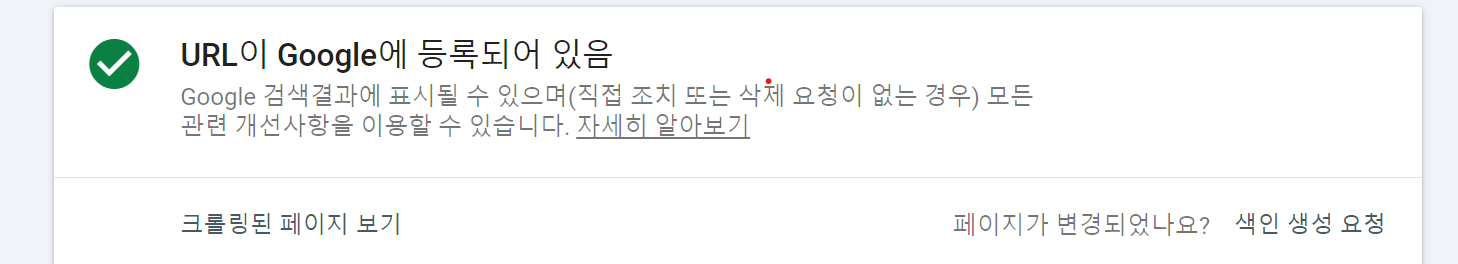 색인은 등록 했지만 구글에 크롤링 되었는지 안되었는지 여부도 체크가 가능합니다.