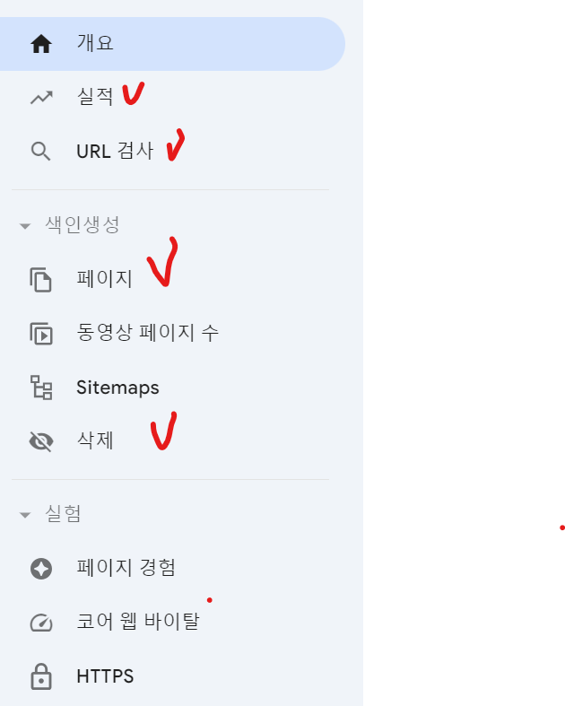 주로 서치콘솔을 이용한다면 이렇게 크게 4가지로 나누며, 그 밑으론 정말 전문가의 영역이라서