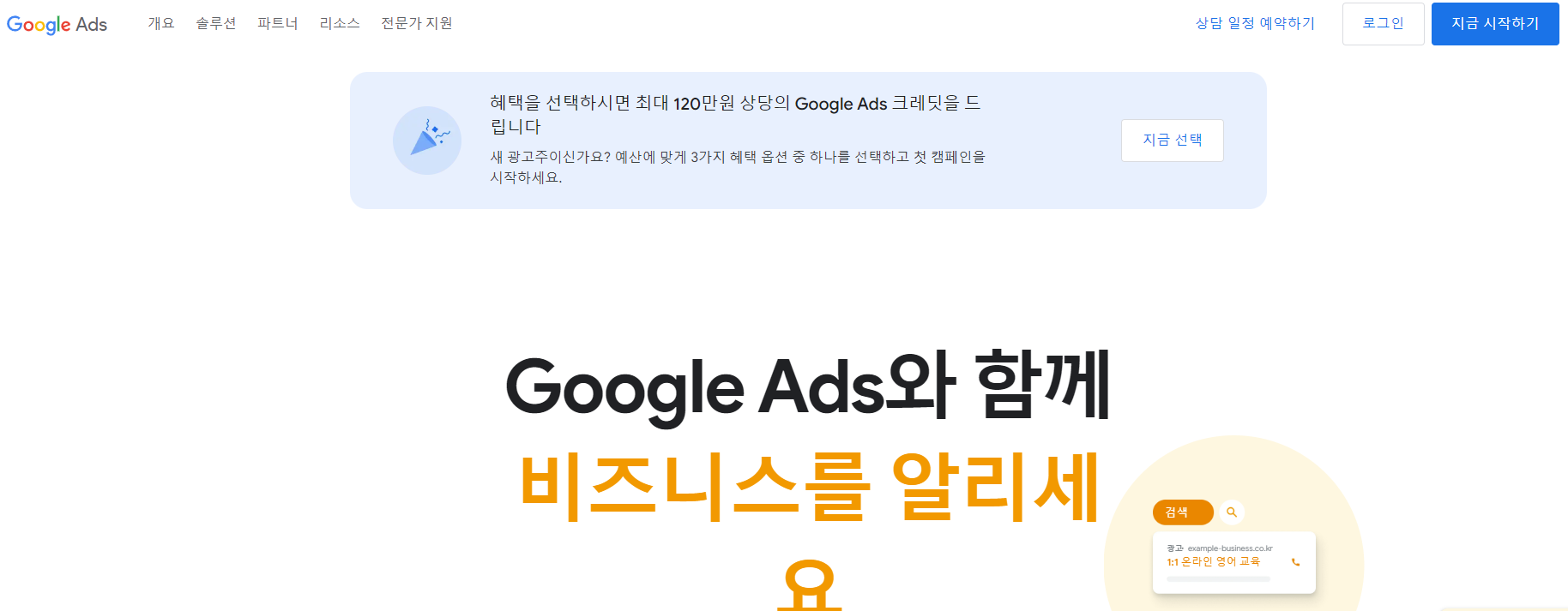 구글 애즈를 시작하기 위해 로그인을 해주시고 계정을 만들어주시기 바랍니다.