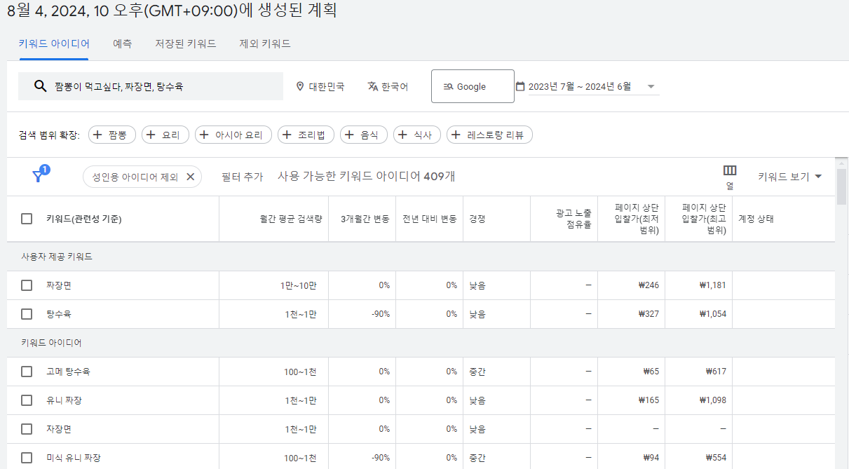 구글 애드워즈 키워드플래너 사용해서 애즈 광고 시작하기 – 2024년8월