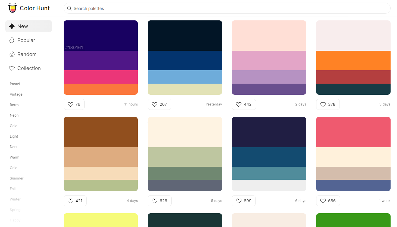컬러 조합 사이트 추천으로는 컬러헌트와 어도비가 있습니다만